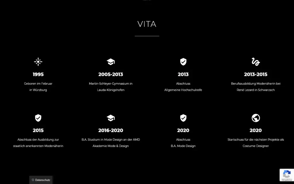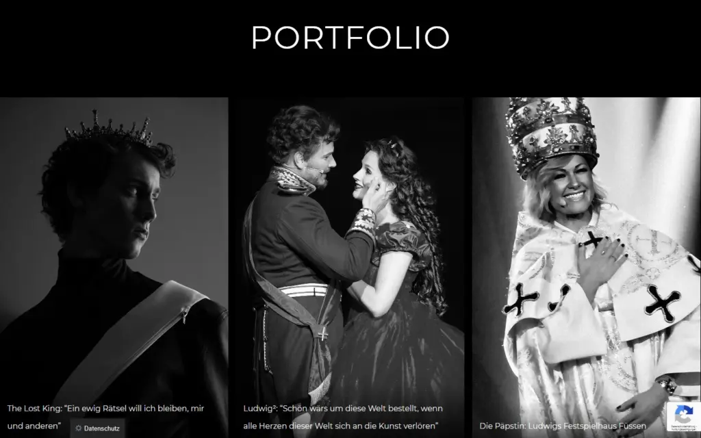 Die Startseite ist als sogenannter OnePager aufgebaut, für Portfolio und Vita wurden zudem kleinere, separate Unterseiten erstellt. Aufgrund der im Go-Theme integrierten „Page Builder“ Erweiterung CoBlocks konnten Webdesign und Responsive Layout leicht realisiert werden. Neben mehreren Bildergalerien wurde auch ein selbst gehostetes Video auf der Website eingebettet – mit WordPress und den darin standardmäßig enthaltenen Medienoptionen ist das ganz komfortabel möglich.