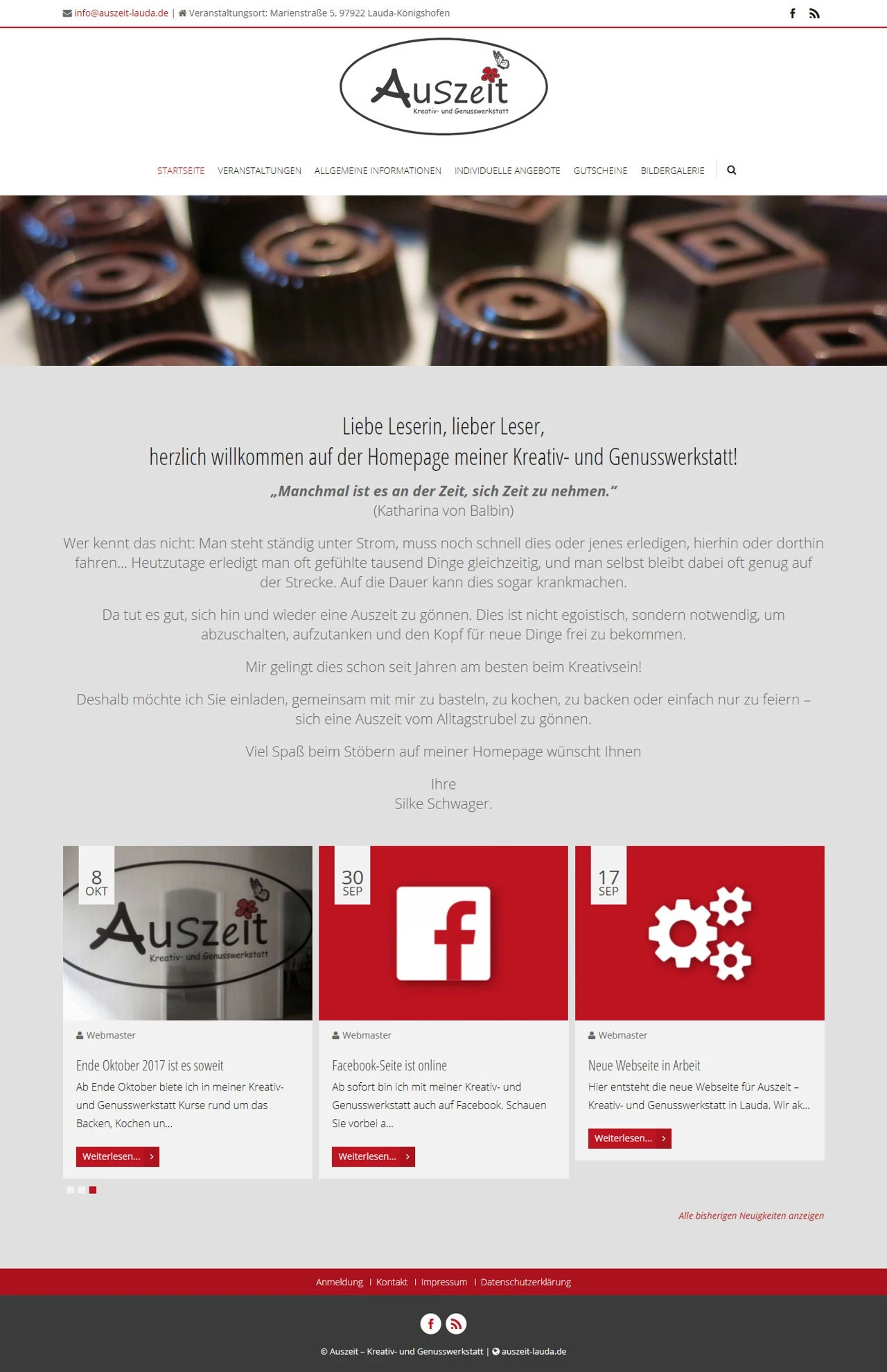 Website für Auszeit – Kreativ- und Genusswerkstatt Lauda
